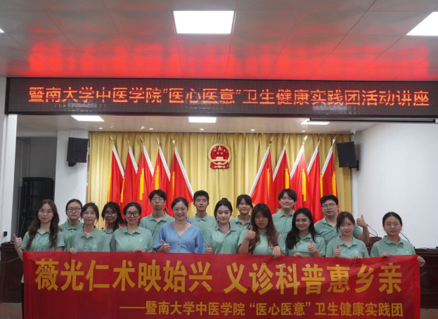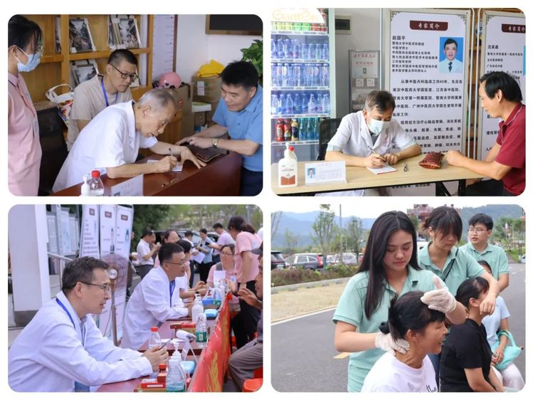 为积极响应国家乡村振兴战略和广东省“百千万工程”号召,深入推进“双百行动”,7月23日至27日,暨南大学中医学院院长朱晓峰、党委书记金学刚率暨南大学“百千万工程”突击队行动重点团队——“医心医意”卫生健康实践团赴韶关市始兴县,开展“党建领航送健康,名医荟萃惠始兴”活动。活动涵盖名中医工作室揭牌、健康义诊、文化夜市、中医科普、调研考察等,内容丰富、意义深远。广东省名中医沈英森,全国老中医药专家学术经验继承工作指导老师赵国平等名医专家,学院领导黄晓霞、刘红杰以及青年教师、港澳台侨学生等30多人参加。