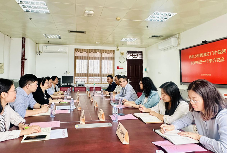 近日,暨南大学附属江门中医院张灵书记带队一行5人来我院开展座谈交流。学校医学部副主任王颖、医院管理办公室主任陈迈出席交流座谈会。附属江门中医院党委书记张灵、党委副书记李鹏飞、办公室主任赵晓东、科教科科长李筱颖,学院领导朱晓峰、黄晓霞、刘红杰、李晓娟等参加座谈会。会议在教学大楼1405举行。