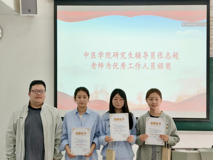 大会举行优秀工作人员颁奖仪式以及聘书颁发仪式。张志超为第八届学院研究生会优秀工作人员颁奖,并为第九届研究生会成员颁发聘书。